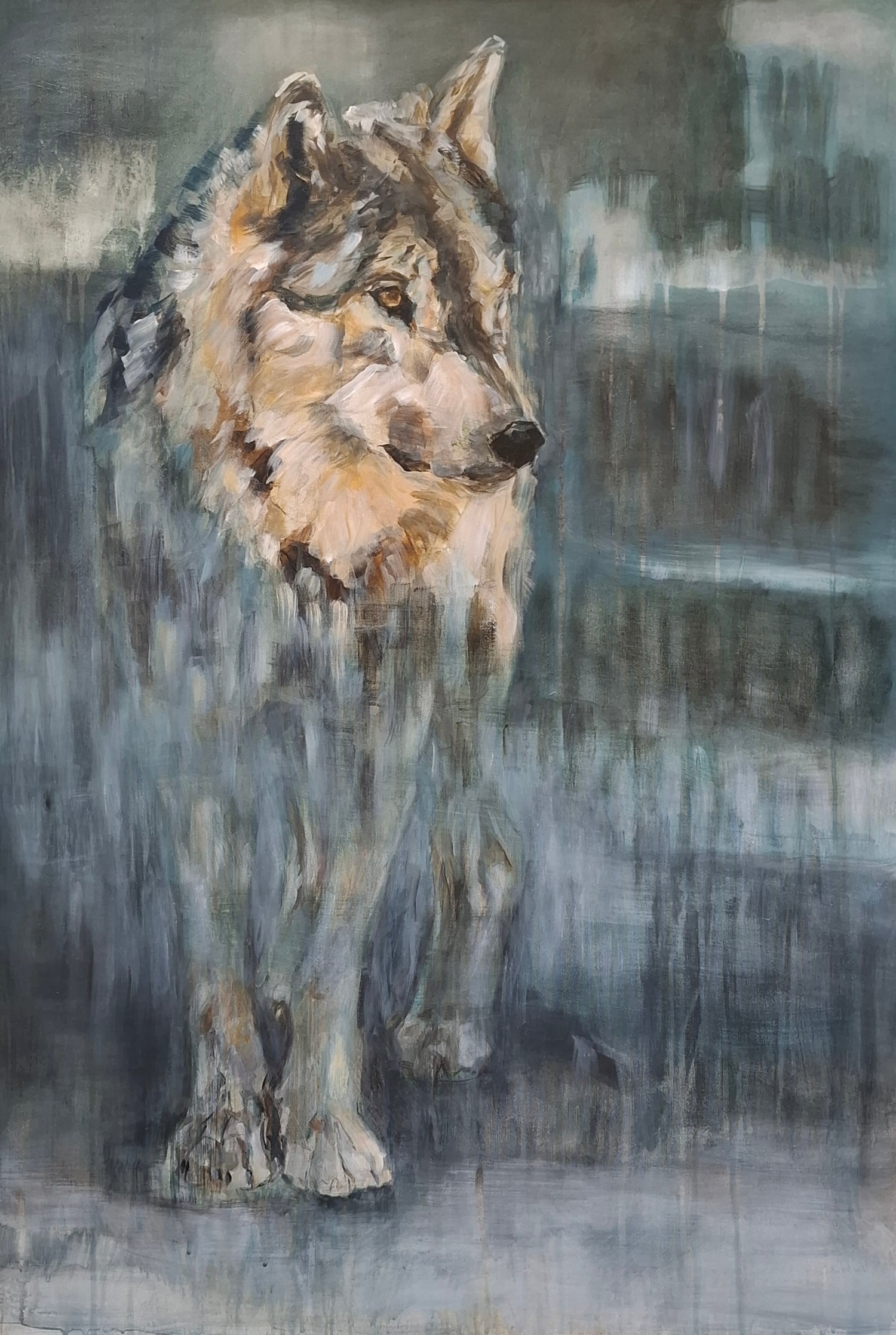 Binnenkort online: Presence I, de eerste in een serie van 5 grote schilderijen in acryl, 70x100 cm