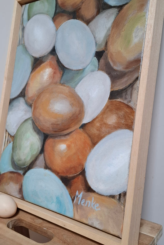 Eieren in kleur: Origineel olieverfschilderij inclusief lijst, 30x40x1.5 cm